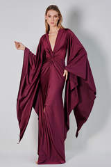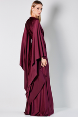 Um encontro entre drama e elegância. Vestido longo de um ombro só, com drapeado assimétrico que se ajusta perfeitamente ao corpo. A manga única longa e fluida adiciona movimento e imponência ao visual. O recorte lateral cria uma silhueta esguia e sensual, enquanto a fenda frontal traz um toque de ousadia. Confeccionado em malha Jersey de brilho sutil, perfeito para destacar-se em ocasiões especiais.