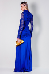 VESTIDO LONGO AZUL DE MANGAS EM TULE UNITY SEVEN