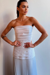 Vestido longo fluido tomara que caia, acompanha faixa. . Confeccionado em crepe com detalhes em recortes estratégicos pelo corpo do vestido para valorizar a silhueta feminina. . Fechamento por zíper na lateral. Peça não possui bojo. Forro com o próprio tecido e fenda frontal.