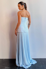 VESTIDO LONGO AZUL SEM ALÇAS UNITY SEVEN