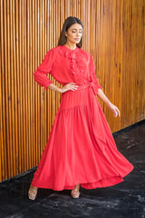 VESTIDO LONGO COM BABADOS