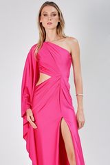 VESTIDO ROSA ASSIMÉTRICO COM MANGAS UNITY SEVEN