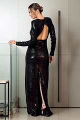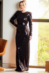 VESTIDO LONGO DE PAETÊ PRETO UNITY SEVEN