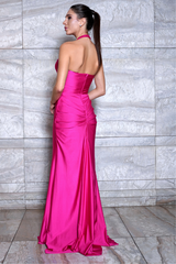 VESTIDO LONGO PINK COM RECORTES NO DECOTE UNITY SEVEN