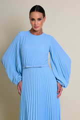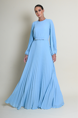 VESTIDO LONGO PLISSADO COM MANGAS UNITY SEVEN