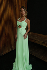 VESTIDO LONGO VERDE PLISSADO UNITY SEVEN