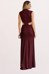 VESTIDO LONGO VINHO COM RECORTES UNITY SEVEN