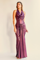 VESTIDO LONGO AMEIXA METALIZADO COM DECOTE HALTER UNITY SEVEN