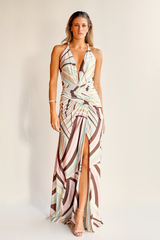 VESTIDO LONGO ESTAMPADO COM DECOTE DE BOLAS UNITY SEVEN