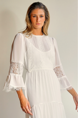 VESTIDO LONGO FLUIDO BRANCO COM MANGAS UNITY SEVEN