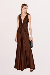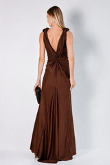 VESTIDO LONGO MARROM COM ALAMAR UNITY SEVEN