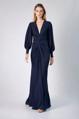 VESTIDO LONGO AZUL MARINHO DE MANGAS LONGAS UNITY SEVEN