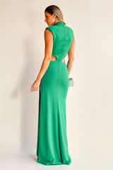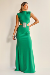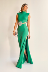 VESTIDO LONGO VERDE COM RECORTES UNITY SEVEN