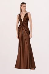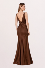 VESTIDO LONGO MARROM COM DETALHES NOS OMBROS UNITY SEVEN