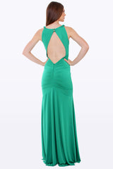 Vestido longo confeccionado em jersey com nó na cintura e alças torcidas. Fechamento por zíper nas costas. Peça não possui bojo.