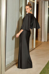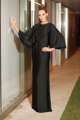 VESTIDO DE FESTA LONGO COM MANGAS AMPLAS PRETO