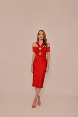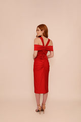 VESTIDO DE FESTA MIDI COM DRAPEADO NA CINTURA VERMELHO