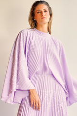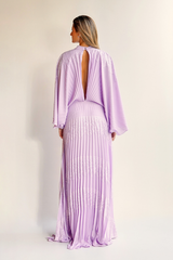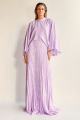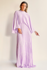 VESTIDO LONGO LILÁS DE RENDA COM MANGAS UNITY SEVEN