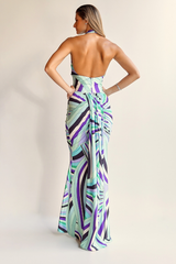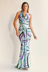 VESTIDO LONGO ESTAMPADO COM DECOTE HALTER UNITY SEVEN