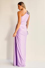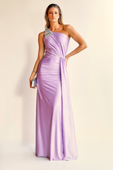 VESTIDO LONGO LILÁS COM APLICAÇÃO NO OMBRO UNITY SEVEN