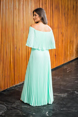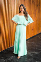 VESTIDO LONGO PLISSADO OMBRO A OMBRO