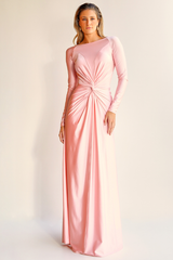 VESTIDO LONGO ROSA COM MANGAS LONGAS UNITY SEVEN