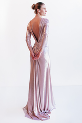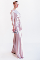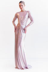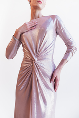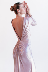 VESTIDO LONGO ROSÉ METALIZADO COM MANGAS LONGAS UNITY SEVEN