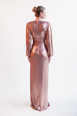 VESTIDO LONGO ROSÊ METALIZADO DE MANGAS LONGAS UNITY SEVEN