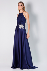 VESTIDO LONGO SEM MANGAS COM APLICAÇÃO NA LATERAL