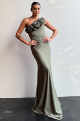 VESTIDO LONGO VERDE DE UMA MANGA SO