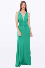 Vestido longo confeccionado em jersey com nó na cintura e alças torcidas. Fechamento por zíper nas costas. Peça não possui bojo.
