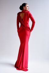 VESTIDO LONGO VERMELHO COM MANGAS LONGAS EM JERSEY UNITY SEVEN